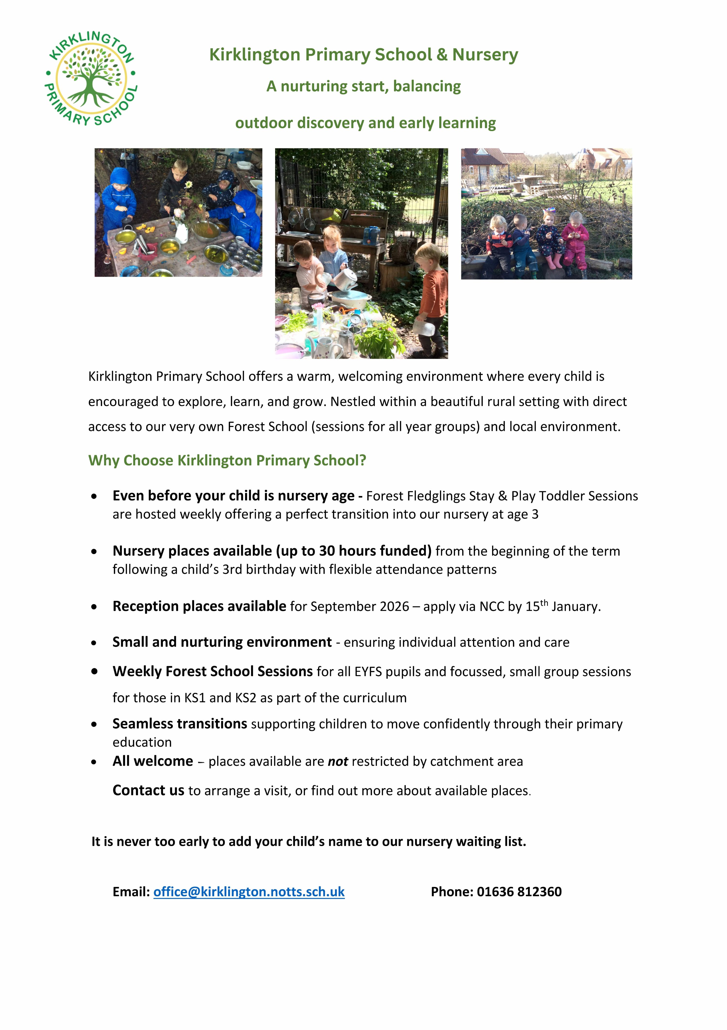 Kirklington Primary School offers a warm, welcoming environment where every child is encouraged to explore, learn, and grow. Nestled within a beautiful rural setting with direct access to our very own Forest School (sessions for all year groups) and local environment.
